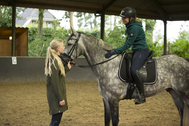 Een belangrijk aandachtspunt in de paardensport is paardenwelzijn. In de Instructeursopleiding komt het welzijn van paarden uiteraard prominent naar voren. Rachelle Klees legt uit op wat voor manier paardenwelzijn een rol speelt in de opleiding: “Je basiskennis over het paard wordt tijdens de opleiding goed bijgespijkerd. Je leert bijvoorbeeld veel op het gebied van het harnachement, voeding, de natuurlijke behoeften van een paard, zijn gezondheid en het exterieur. Het welzijn van het paard staat altijd voorop en daar ligt als instructeur ook je focus op tijdens de eerste tien minuten van een les. Je leert om aan het begin van iedere les als het ware een checklist na te lopen. Oogt het paard gezond? Is hij constant in zijn bewegingen? Heeft hij het juiste harnachement en is dat goed afgesteld? Zit de neusriem niet te strak? Gaat het ook goed met de ruiter? Pas als alles uit deze basischeck voldoende is bevonden, kun je echt beginnen met de instructie. Verder leer je tijdens de opleiding veel over het exterieur en de bouw van het paard. Die kennis is belangrijk want de bouw heeft veel invloed op de wijze waarop een paard beweegt. Als instructeur houd je daar in de les rekening mee om ervoor te zorgen dat het paard zich verder kan ontwikkelen op een manier die bij hem past en waar de ruiter zich prettig bij voelt.”