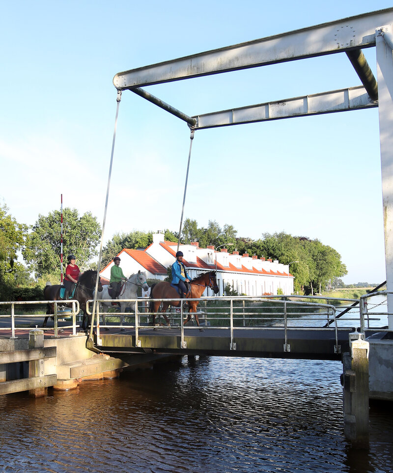 Voor Christa Reitzema, die midden in het gebied woont en regelmatig van start gaat in dressuur- en springwedstrijden, ‘s zomers af en toe een oefencrossje rijdt en KNHS-jurylid is, was het een mooie gelegenheid om die ervaringen in te brengen. “De bodem van de bermen is soms veen, maar ook zand of klei en is vlak. Daardoor leent het zich uitstekend voor galoptraining. Ik rijd hier veel met mijn wedstrijdpaarden. Voor de ervaren ruiter vormen deze bermen een schitterende uitdaging om eens lekker voluit te gaan. Gelukkig hebben we een prima samenwerking met de gemeente Midden-Groningen, die verantwoordelijk is voor het onderhoud van de bermen en dat onderhoud zeer zorgvuldig uitvoert. Het gebied waar we doorheen trekken, is zeer waterrijk en we hebben daardoor ook diverse bruggen in de route opgenomen. We weten dat voor sommige paarden een brug een moeilijk te overwinnen obstakel is. Daarom hebben we bij alle bruggen aan weerszijden opstapplaatsen weten te realiseren, zodat het gemakkelijk wordt om af te stijgen, de brug met het paard aan de hand te passeren en dan weer gemakkelijk op te stappen.”